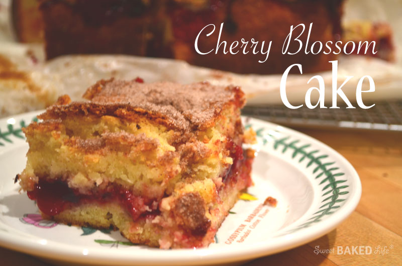 With spring upon us, and the delicate pink and white flowers of the cherry trees swaying in the breeze, I was inspired to celebrate the season by making this scrumptious Cherry Blossom Cake! This recipe is super easy to prepare and deliciously satisfying to eat! I especially like the crunchy cinnamon-sugar topping against the delicate cake fused with cherry filling — a truly wonderful combination!