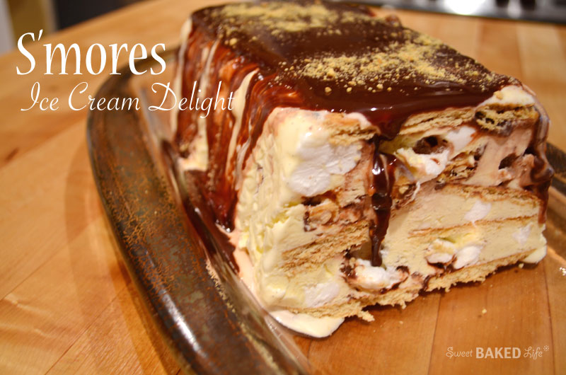 So, if you’ve got a busy June like me, or just looking for a quick and easy dessert to serve at the end of a hot summer day, get ready to whip up this cool and scrumptious S’mores Ice Cream Delight that will make any celebrating even sweeter! The soft yet crisp graham crackers against the smooth vanilla bean ice cream surrounded by tiny fluffy marshmallows and frozen Snickers bits smothered in rich chocolate fudge is a heavenly lip-smacking concoction that will absolutely please any type of crowd!