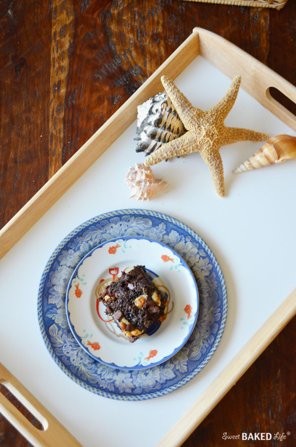 Using a large spoon, evenly place the dollops of the marshmallow filling on top of the chocolate cake batter. Then sprinkle the mini marshmallows, chocolate chips and Rolo candy on top. Bake for 40-45 minutes or until cake is done and the marshmallows are golden (note, it’s ok that the cake is a bit loose in the middle). Remove from the oven and let cool on a wire rack. Cut into squares and serve warm.
