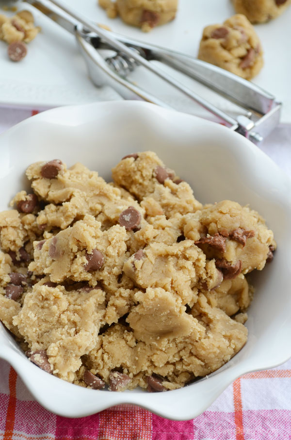 I have always loved to eat raw cookie dough, actually more than eating the baked cookies. As a kid I was always licking the bowls and beaters to make sure I got my fill of the sweet stuff.