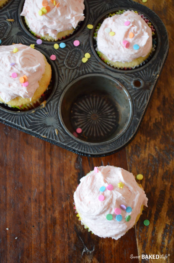 Honey is the star in the soft vanilla cupcakes and beautiful pink frosting!