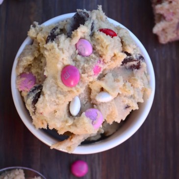 Creamy cookie dough sprinkled with pretty Valentine M&M’s and large semi-sweet chocolate chips. What comes to mind when you think of Valentine’s Day? For me it’s… Love. Chocolate. Kindness. Hearts. Thoughtfulness. Cupid. Romance. Pink. And I love spoiling my family on this special day to show how much I love them. I like to spruce up … More Valentine Cookie Dough {edible}